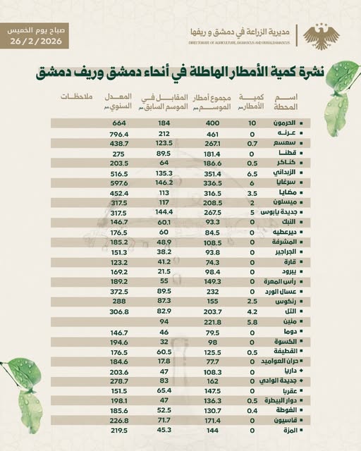 النشرة المطرية : يوم الخميس 2026-02-26