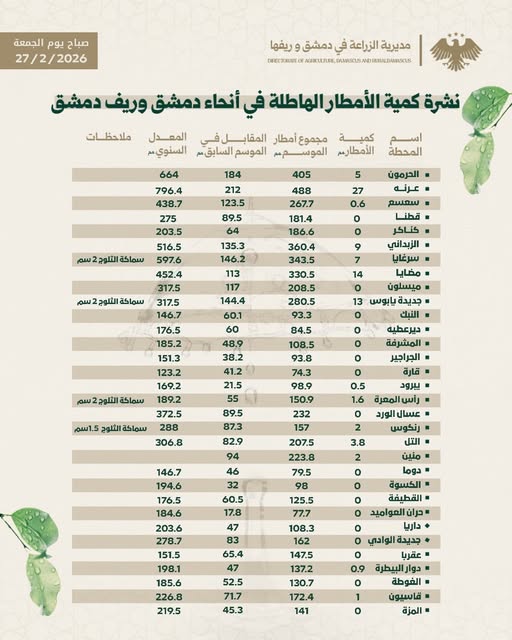 النشرة المطرية : يوم الجمعة 2026-02-27